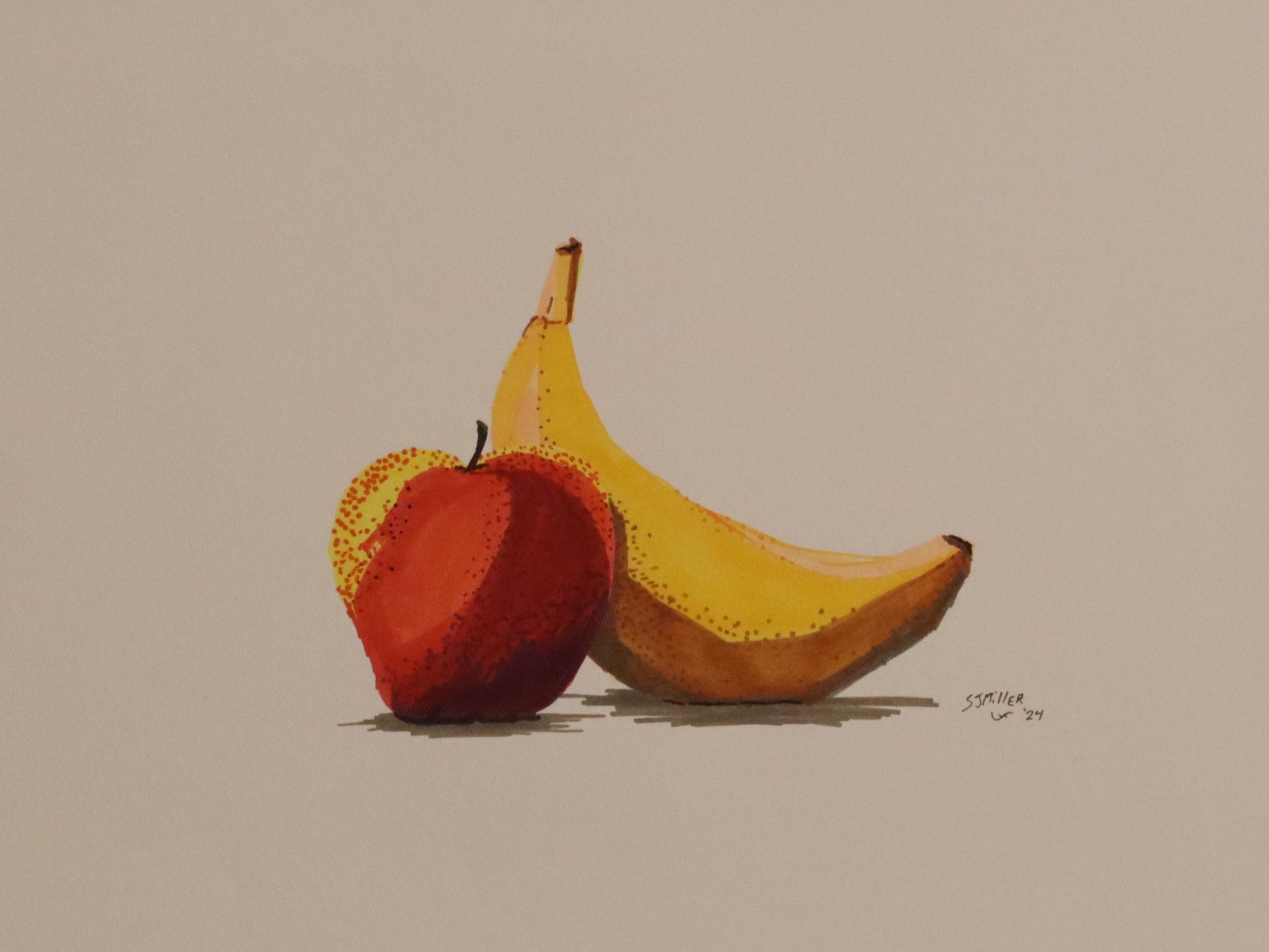 A small series of still-life studies exploring color, form, and texture across multiple mediums. Most pieces focus on apples, until one unexpected banana joined the collection and gave the series its name.