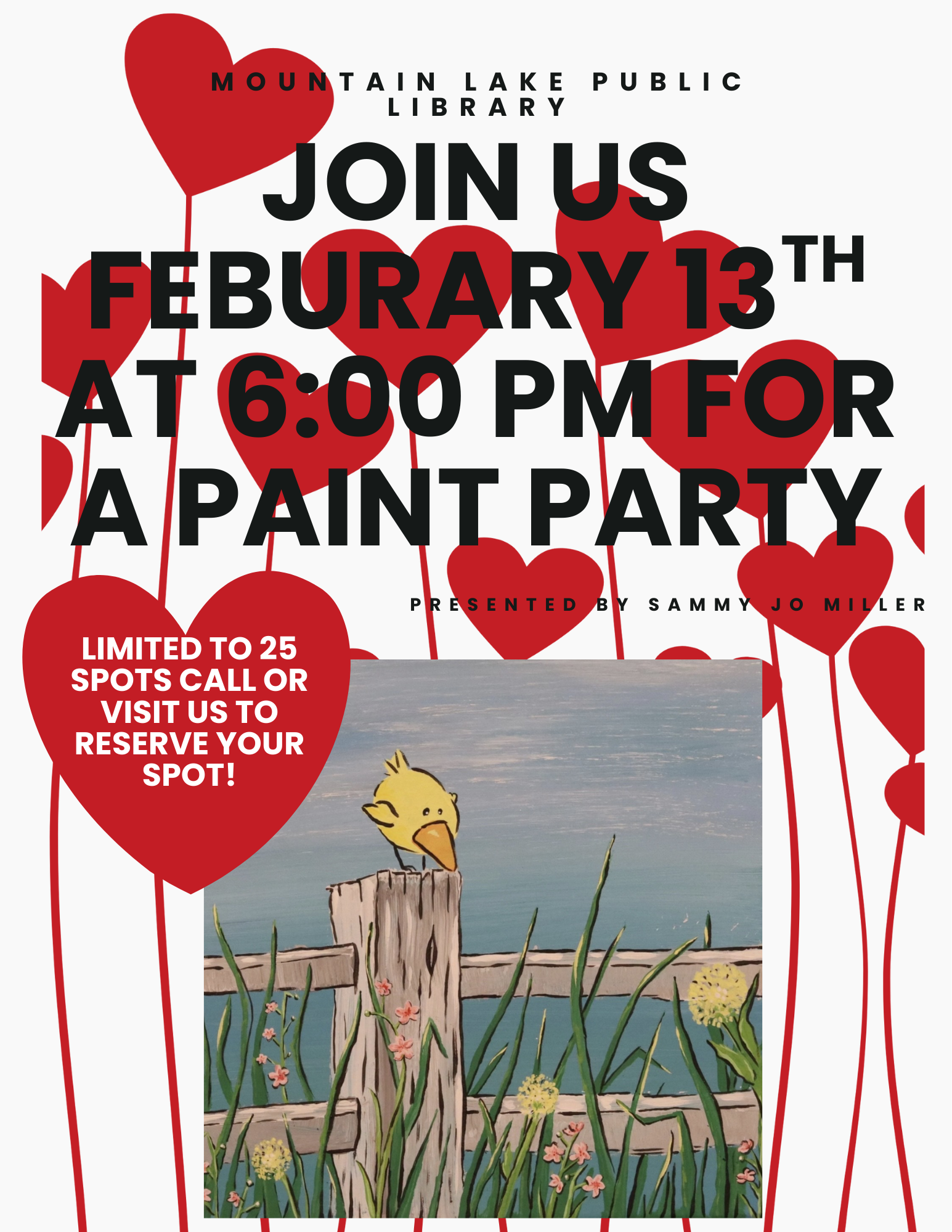 To register call or visit the Mountain Lake Public Library.