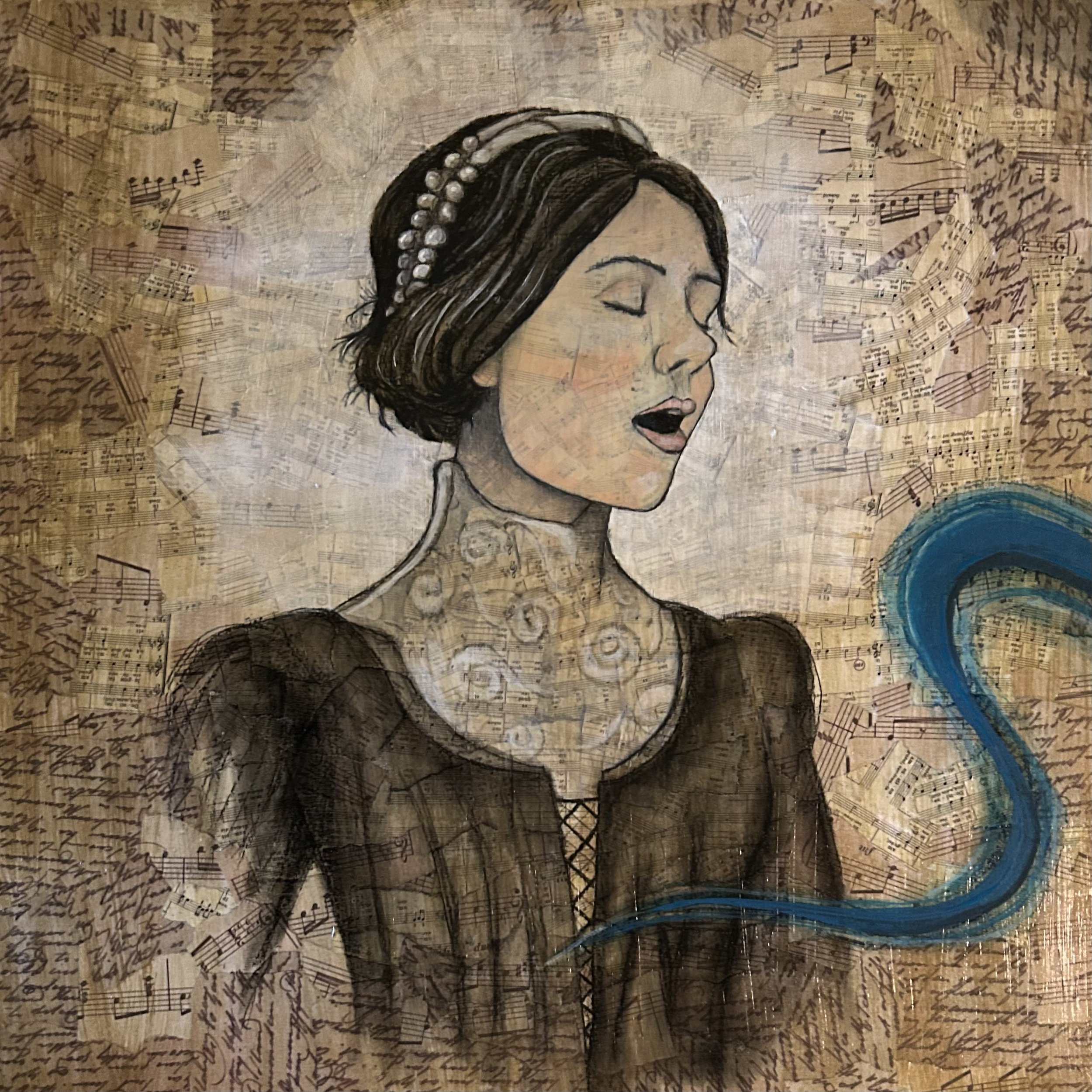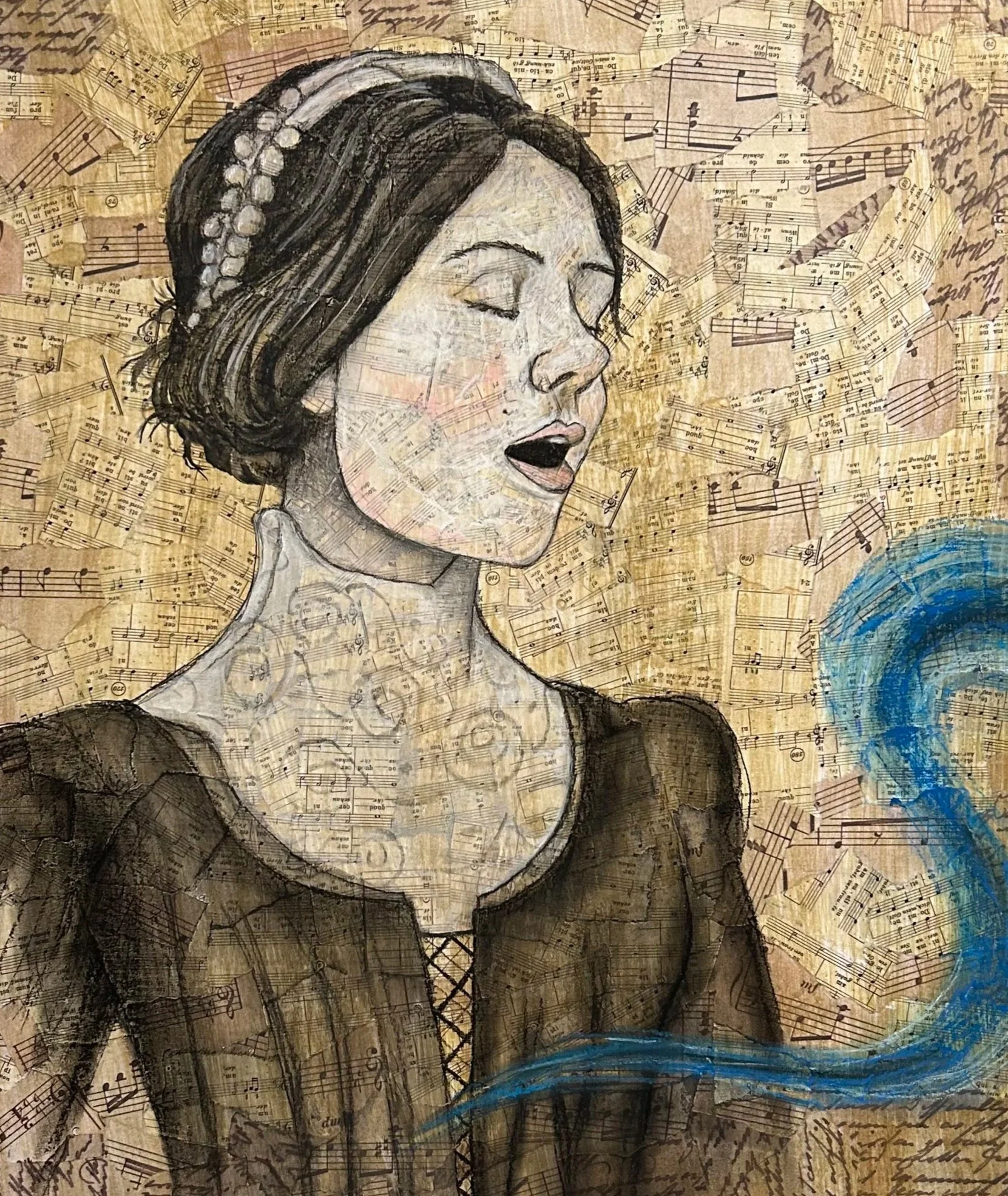 Find Your Voice imagines the moment that silence is broken - when a single, clear note rises above the noise and can no longer be ignored. The work blends the gentle, time-worn textures of the era with flowing strokes that give shape to sound itself, echoing the truth that speaking out, in any age, is both a defiance and a freedom.