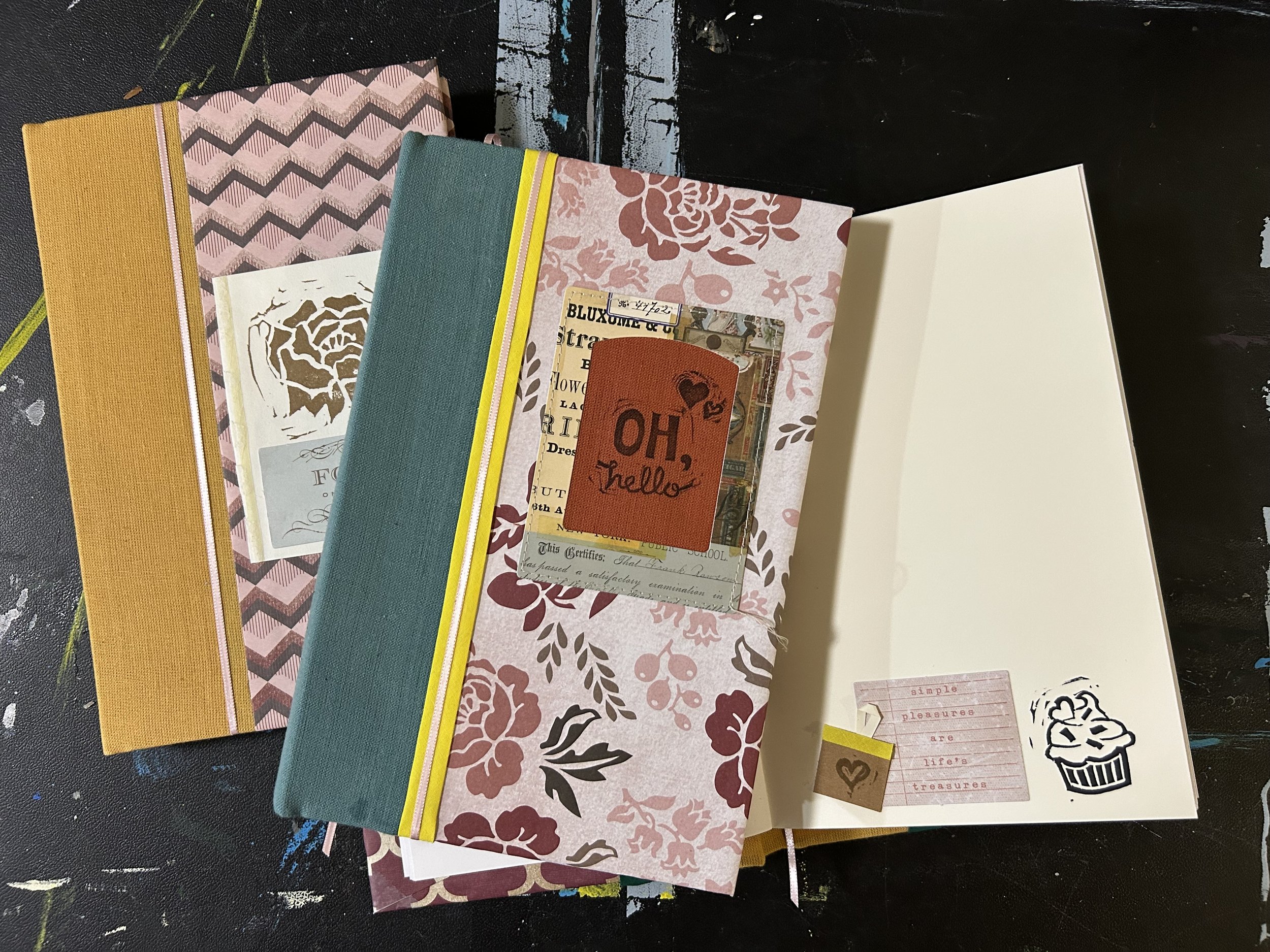 Incorporate fabric. Use scraps for binding, page accents, or ribbon bookmarks.