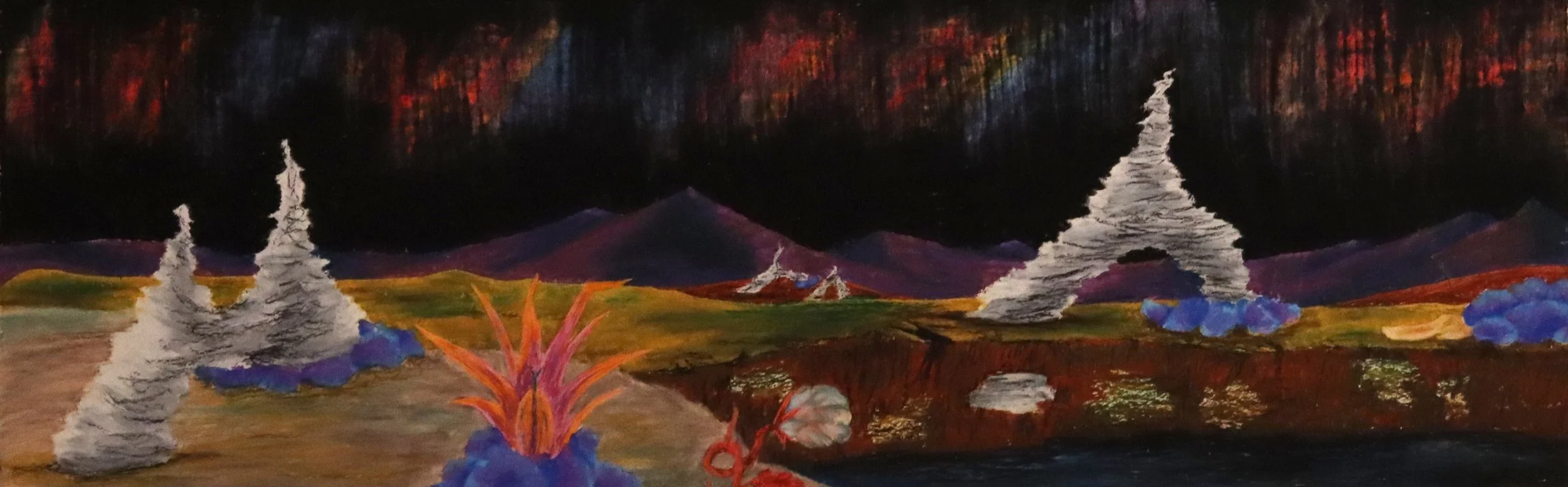 planet landscape study oil river, oil pastel, 8x24 in. 2017